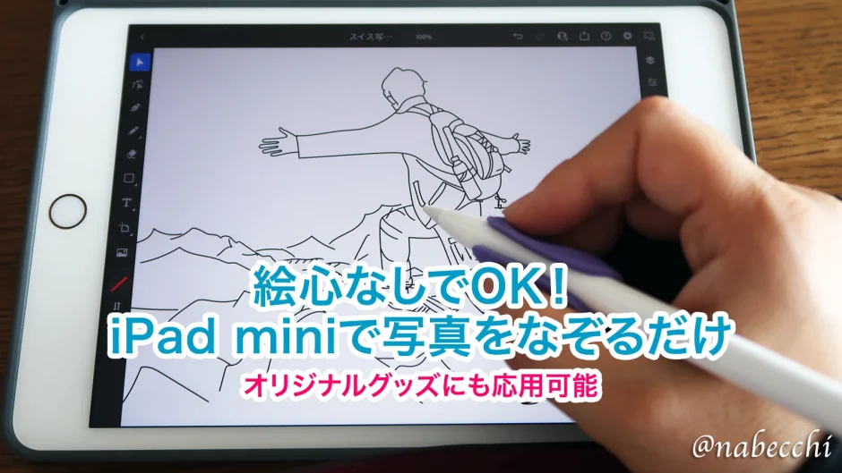 iPad miniとApple Pencilがあれば、写真をなぞるだけで、まるでプロが描いたようなおしゃれな線画イラストが簡単に作れます。この手法を「トレース」と呼びます。